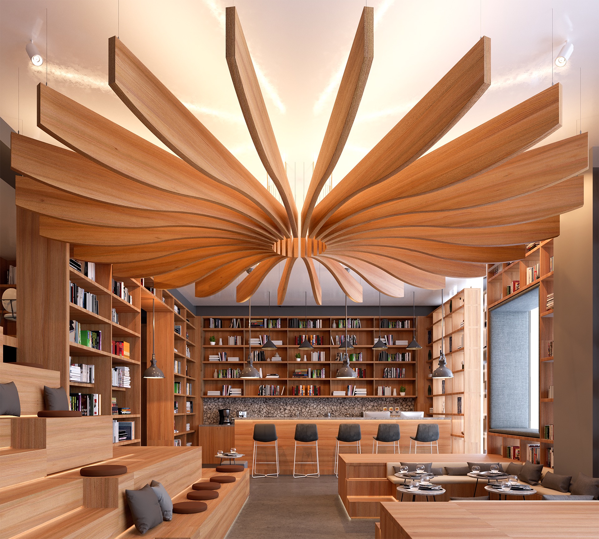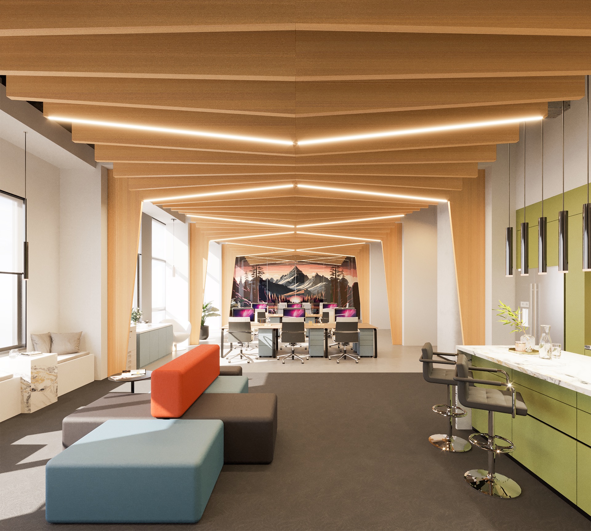 The world's only real wood, acoustic luminaires combining lighting and sound absorption in one solution.
